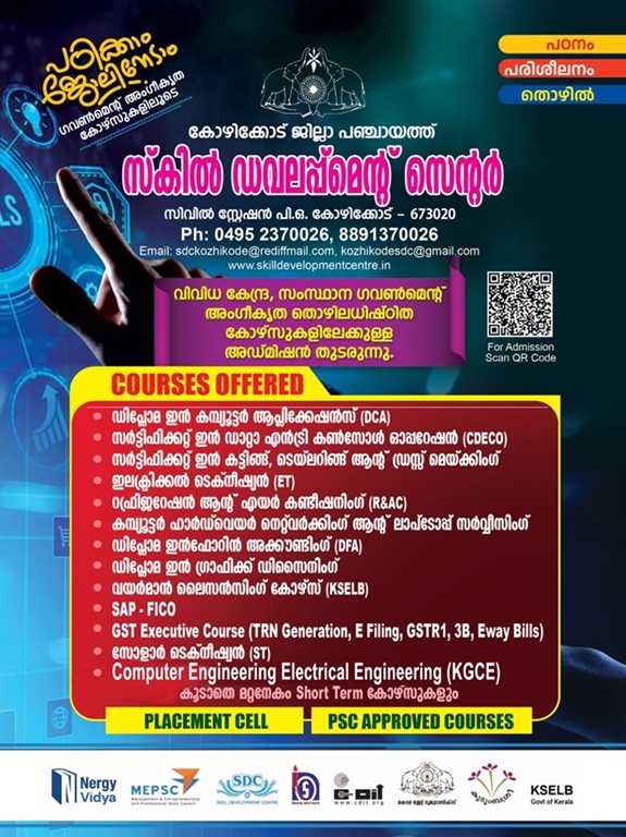 Skill Development Centre is approved by Govt. of Kerala No:50121/PAI/2005/LSGD, GO: 1005/07/LSGD dt.29-3-2007, GO: (R.T)No:631/12/LSGD 1.03.12