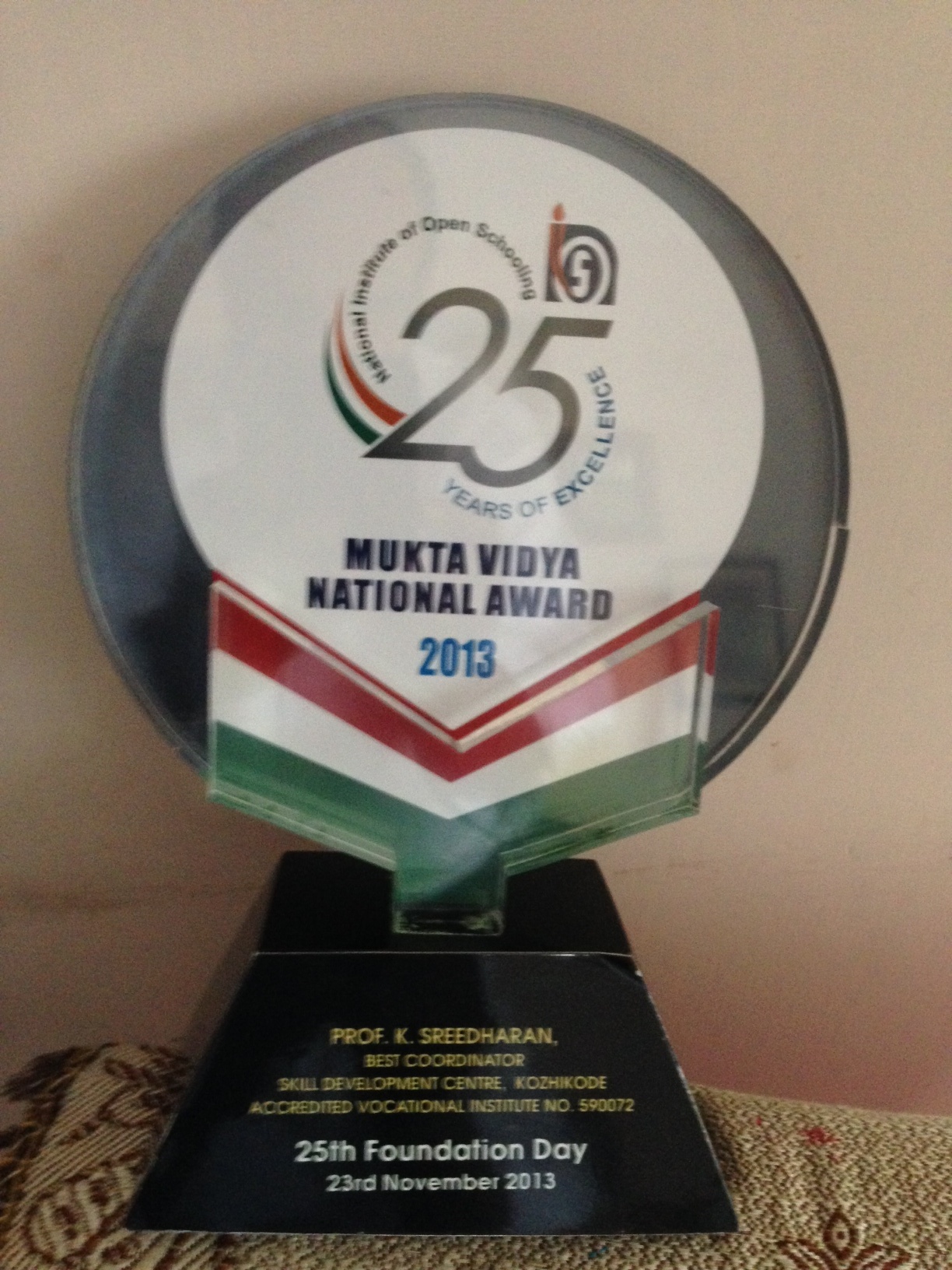 Recipient of 'Muktavidya Ratnam' National award for the best Vocational Training Institute in India instituted by NIOS, MHRD, Govt of India for the year 2012